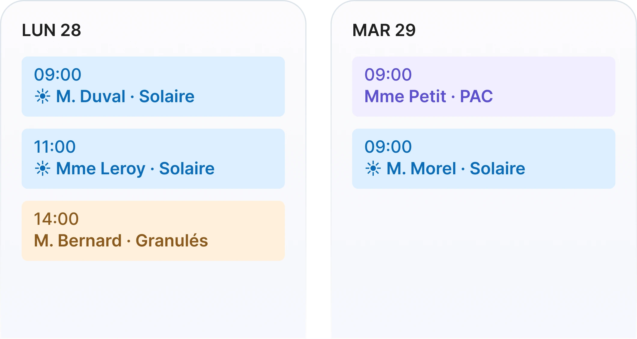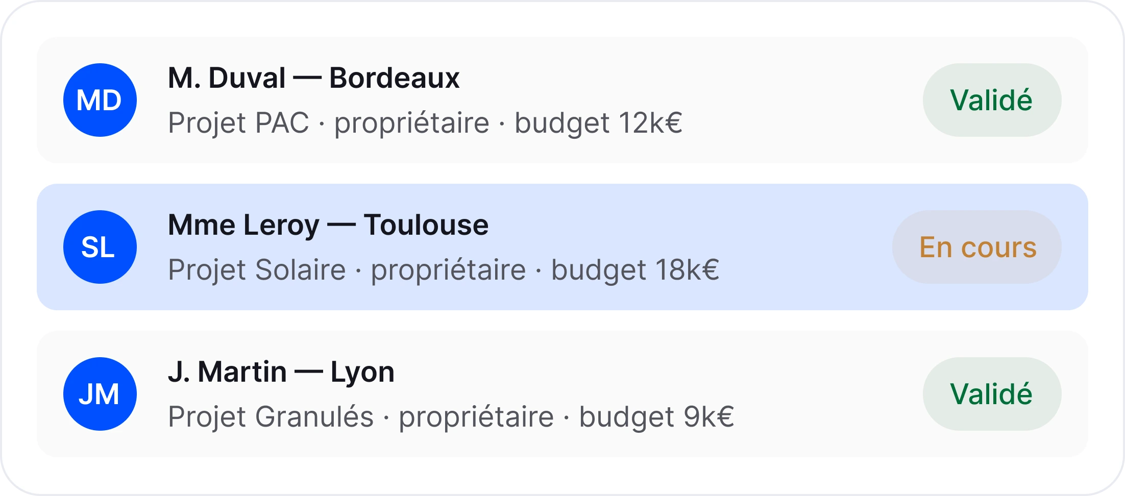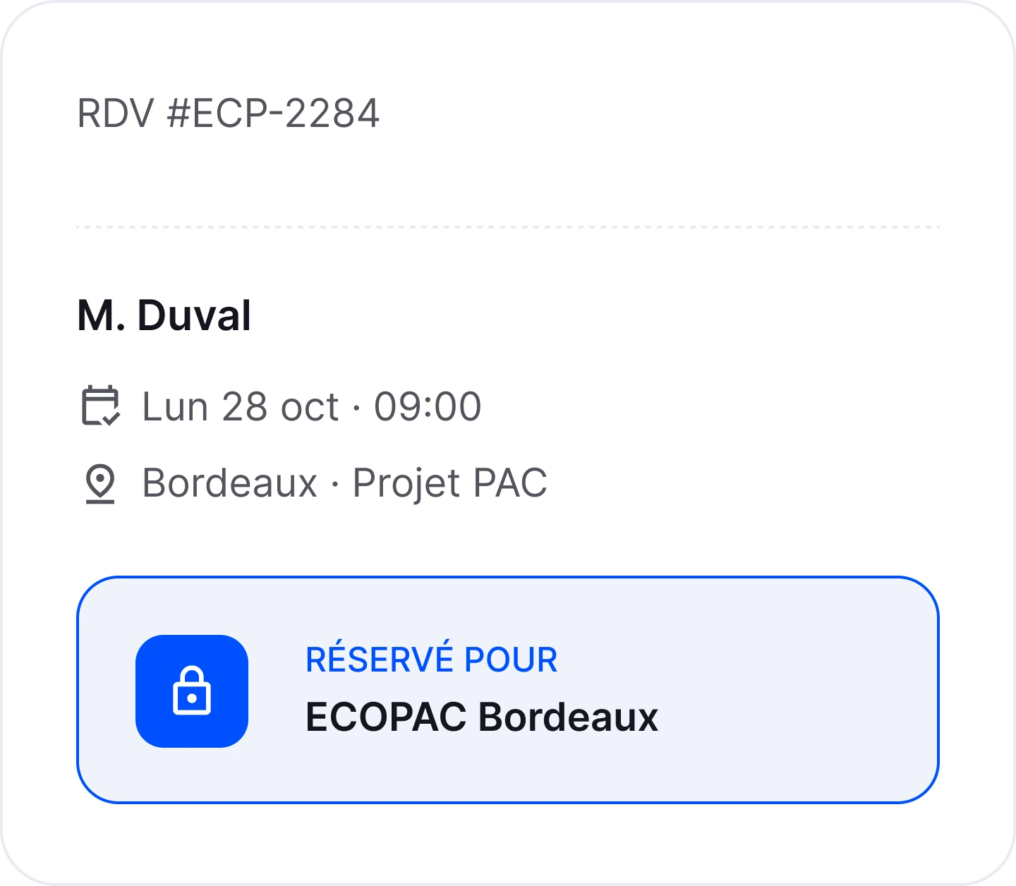 Un RDV livré, un seul installateur partenaire. Jamais revendu, jamais partagé.